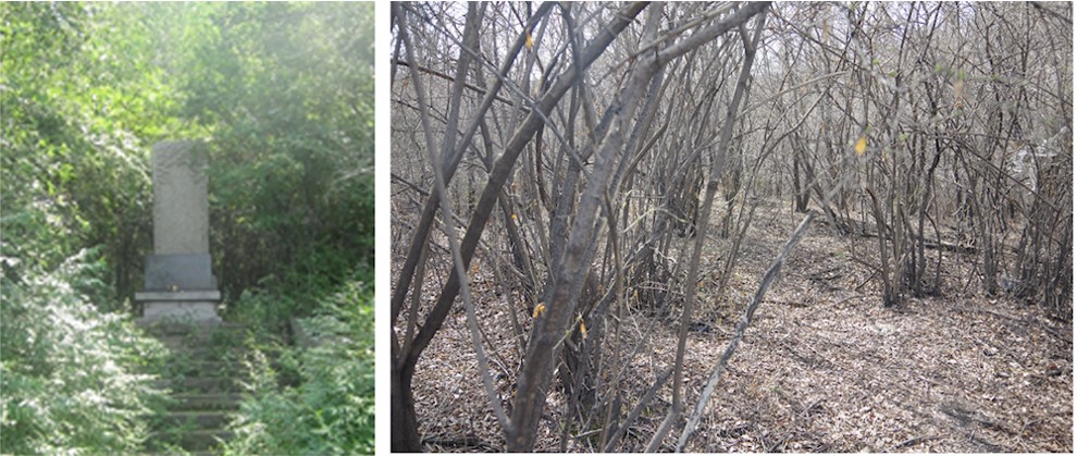 現(xiàn)狀評(píng)價(jià):大倉喜八郎遺發(fā)冢墓碑石塊散落,石塊風(fēng)化嚴(yán)重,鋼筋混凝土結(jié)構(gòu)暴露,表面存在嚴(yán)重的污損。