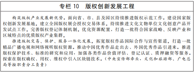 ——知識產(chǎn)權運用取得新成效。知識產(chǎn)權轉移轉化體制機制更加完善,知識產(chǎn)權歸屬制度更加健全,知識產(chǎn)權流轉更加順暢,知識產(chǎn)權轉化效益顯著提高,知識產(chǎn)權市場價值進一步凸顯,專利密集型產(chǎn)業(yè)增加值和版權產(chǎn)業(yè)增加值占GDP比重穩(wěn)步提升,推動產(chǎn)業(yè)轉型升級和新興產(chǎn)業(yè)創(chuàng)新發(fā)展。