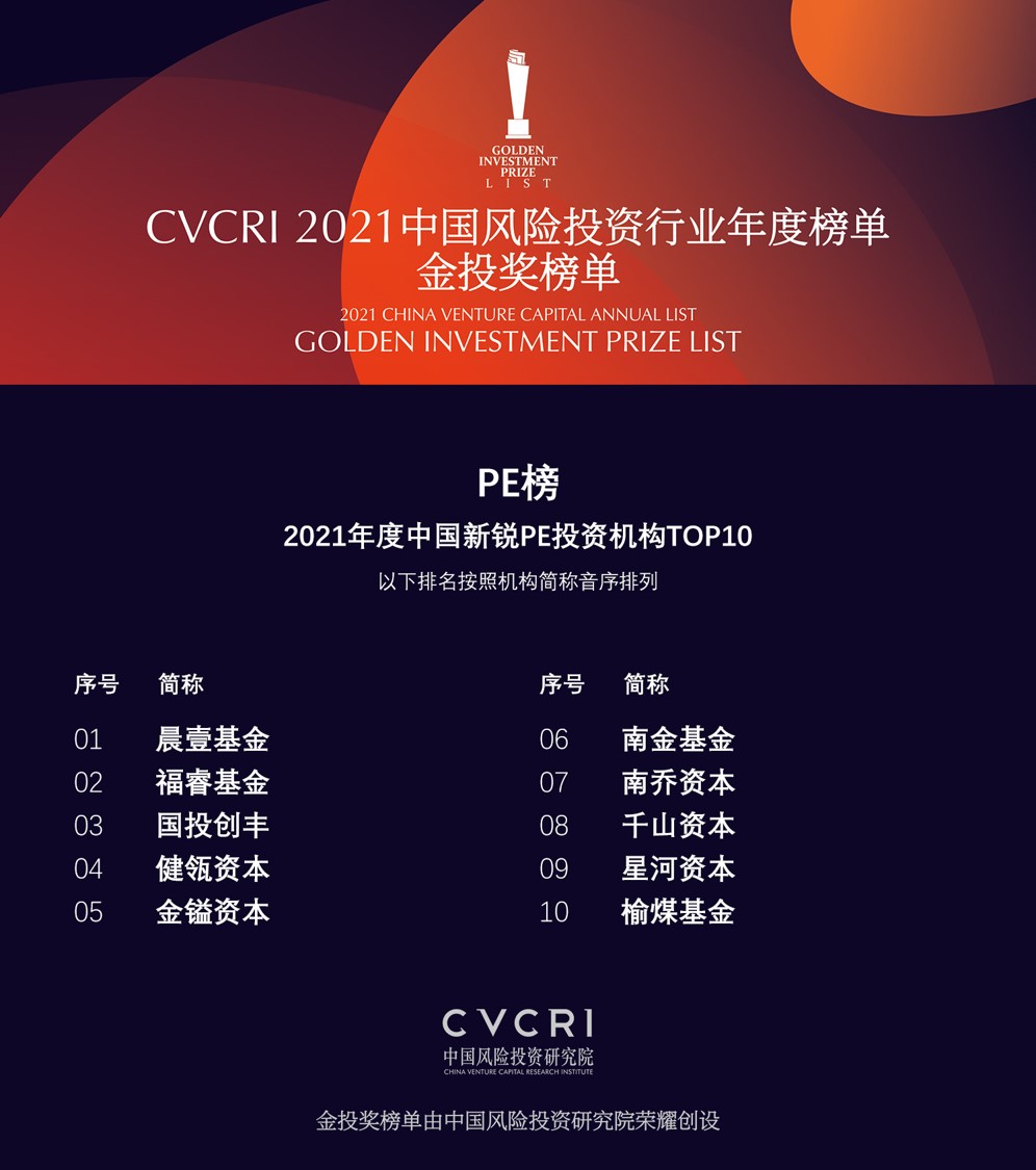 2021年度中國新銳PE投資機構(gòu)TOP10,晨壹基金榮登榜首