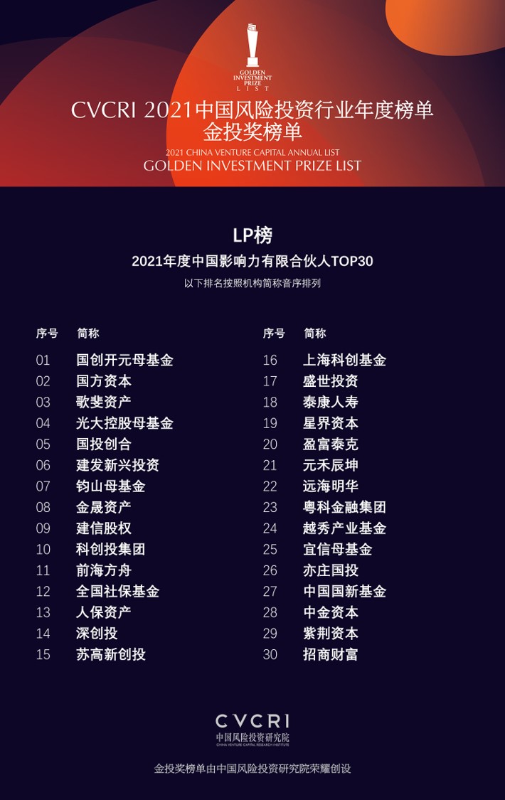 2021年度中國影響力有限合伙人TOP30,國創(chuàng)開元母基金榮登榜首