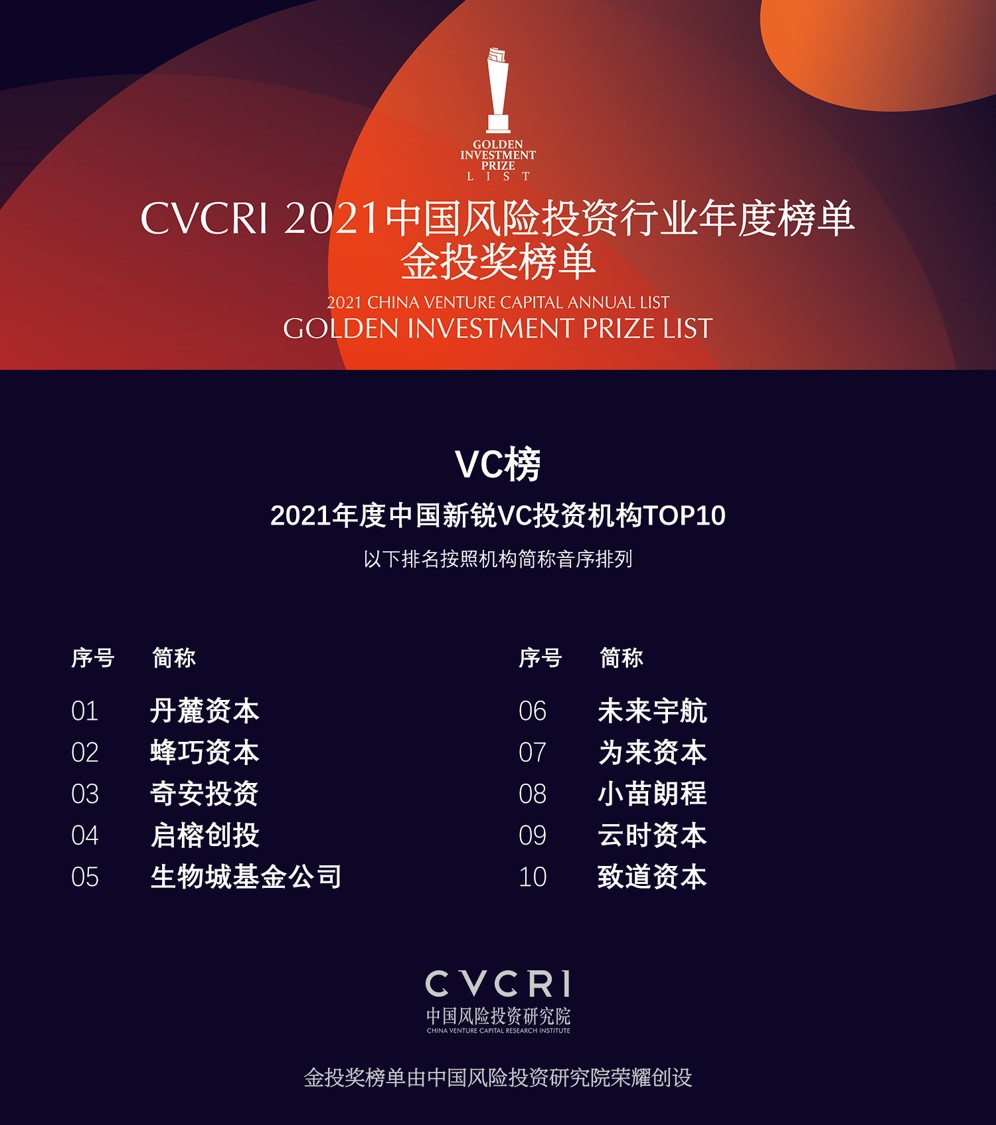 2021年度中國新銳VC投資機構(gòu)TOP10,丹麓資本榮登榜首