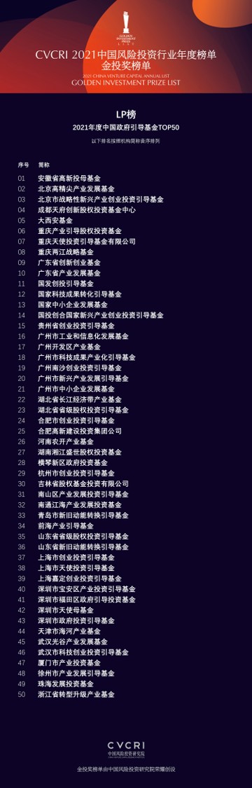 2021年度中國政府引導(dǎo)基金TOP50,安徽省高新投母基金榮登榜首