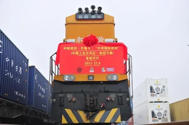 12月9日,一輛滿載著輪胎、生活用品等貨物的班列從上合示范區(qū)青島多式聯(lián)運(yùn)中心駛出,標(biāo)志著齊魯號“中老國際班列”(上合示范區(qū)—老撾萬象)首班正式開行,這也是中老鐵路貫通后山東省發(fā)出的首班國際鐵路班列。本趟班列共50個(gè)標(biāo)準(zhǔn)箱,搭載貨物價(jià)值118萬美元,經(jīng)云南磨憨鐵路口岸出境,預(yù)計(jì)7天內(nèi)抵達(dá)老撾首都萬象。