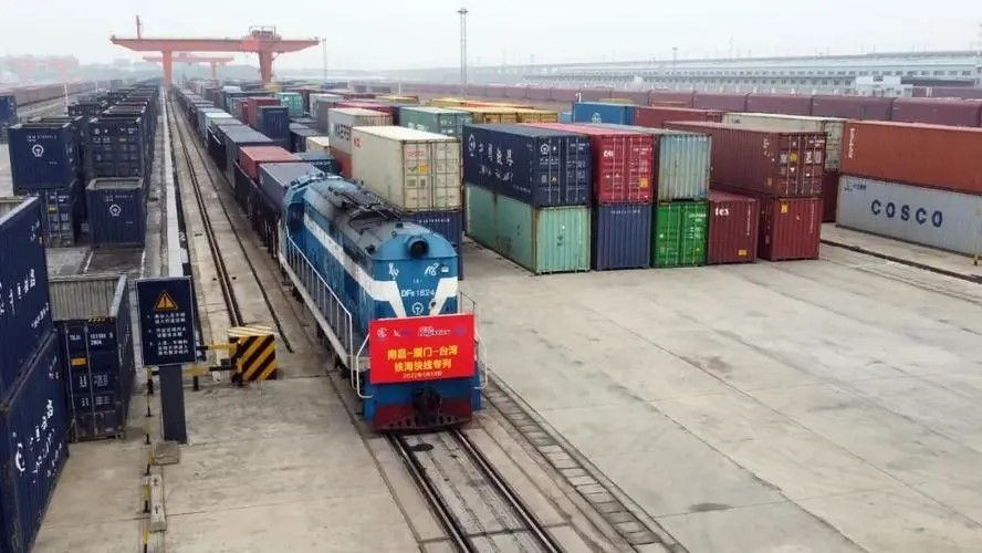 1月10日15時(shí),滿載著“江西制造”貨物的45957次列車,從南昌向塘鐵路口岸出發(fā),將于24小時(shí)后抵達(dá)廈門港。隨后,這批貨物將通過(guò)鐵海聯(lián)運(yùn)模式直運(yùn)臺(tái)灣臺(tái)中、基隆、高雄等多個(gè)港口。這是江西省發(fā)出的首趟至臺(tái)灣的鐵海聯(lián)運(yùn)專列。