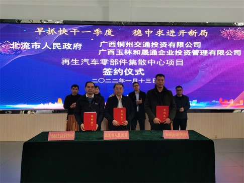 近日,玉林市在“兩灣”產(chǎn)業(yè)融合發(fā)展先行試驗區(qū)招商中心舉行再生汽車零部件集散中心項目簽約儀式。