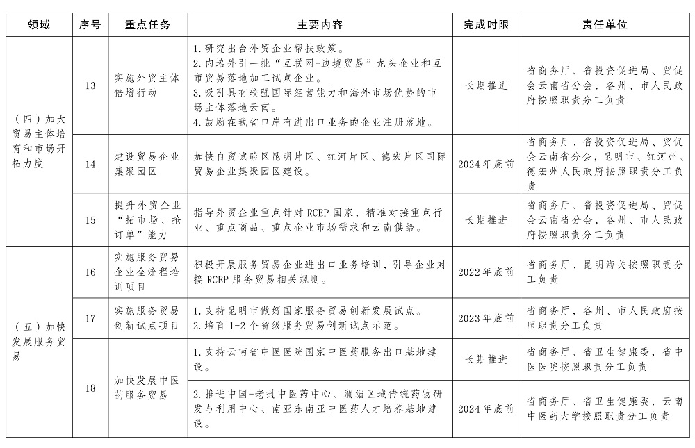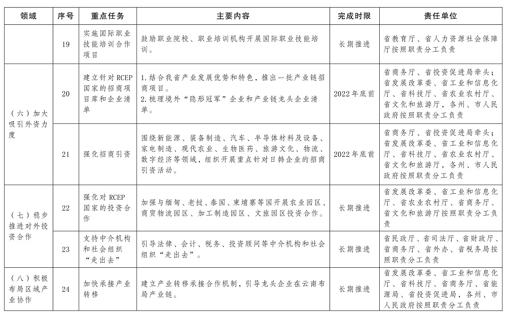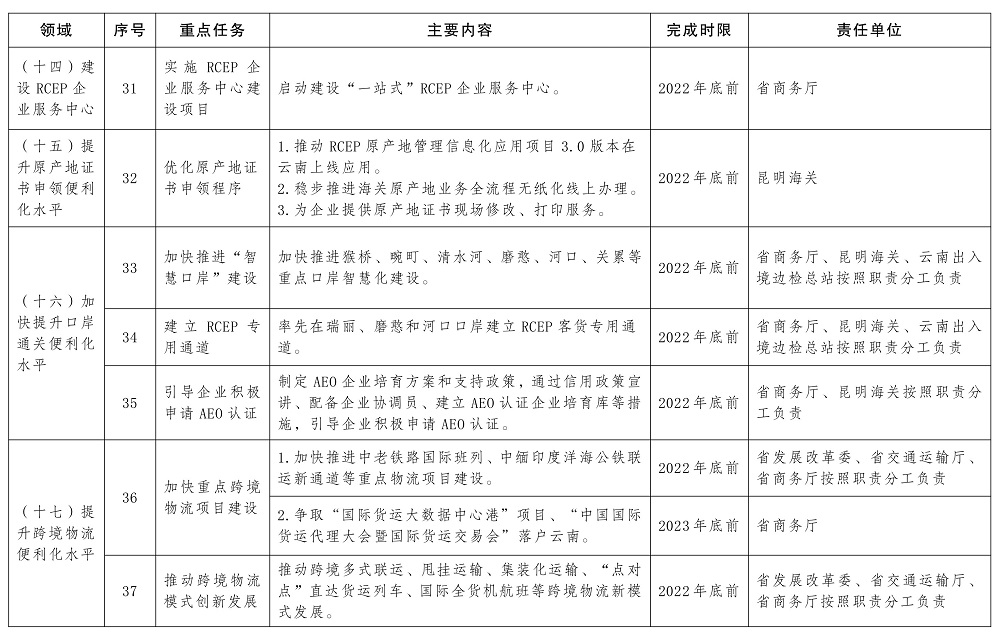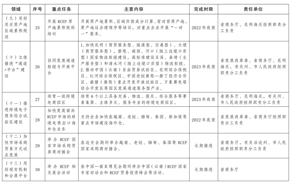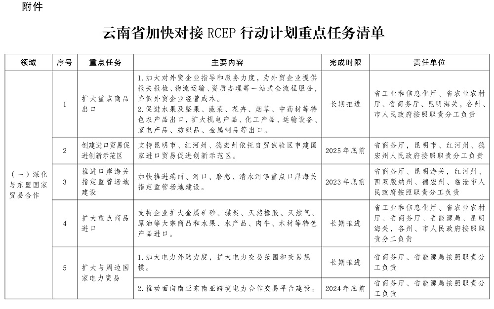 附件:云南省加快對(duì)接RCEP行動(dòng)計(jì)劃重點(diǎn)任務(wù)清單