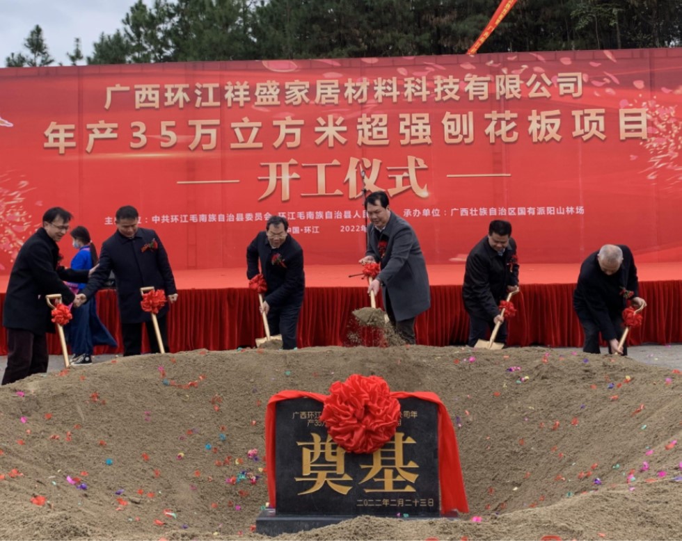 近日,環(huán)江毛南族自治縣引進(jìn)的廣西環(huán)江祥盛家居材料科技有限公司年產(chǎn)35萬(wàn)立方米超強(qiáng)刨花板項(xiàng)目在該縣思恩鎮(zhèn)舉行開工儀式。