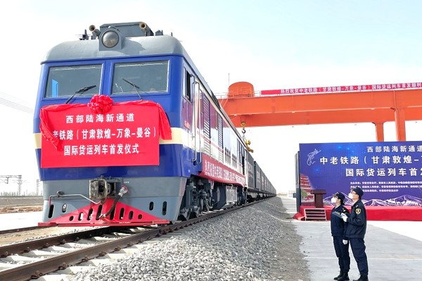 4月21日,首列西部陸海新通道中老鐵路(甘肅敦煌-萬象-曼谷)國際貨運列車從甘肅敦煌始發(fā)開行,滿載20個集裝箱530噸石棉,經(jīng)由中老鐵路云南磨憨口岸出境,過境老撾萬象后,預(yù)計將于12天后抵達泰國曼谷。這是甘肅省首次通過中老國際鐵路線向境外直接出口本地產(chǎn)品,也是國內(nèi)首發(fā)的石棉集裝箱國際鐵路聯(lián)運列車,為甘肅省借助中老鐵路發(fā)展進出口貿(mào)易開辟了新路徑,也為擴大RCEP國家跨境物流合作開辟了新通道。