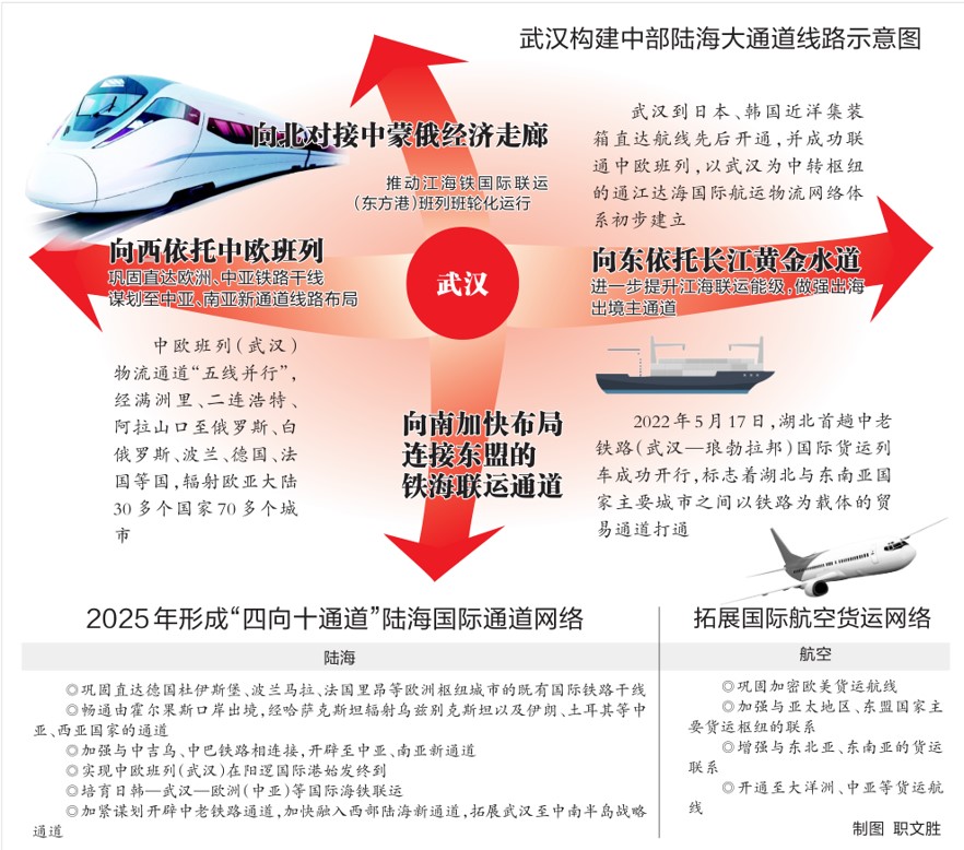 隨著湖北中老鐵路國(guó)際貨運(yùn)列車在武漢首發(fā),以及天河機(jī)場(chǎng)國(guó)際航線、武漢港江海直達(dá)航線、中歐班列的不斷開(kāi)通和加密,武漢對(duì)外交通網(wǎng)絡(luò)日益完善,陸??諊?guó)際大通道越來(lái)越密,武漢的“朋友圈”也越來(lái)越廣。