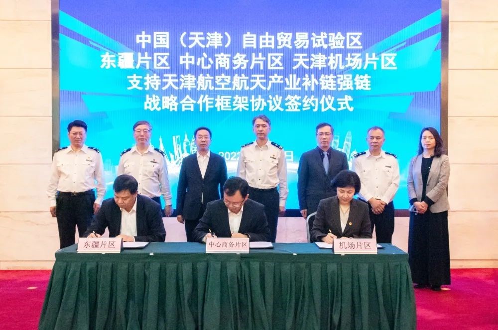 近日,《中國(guó)(天津)自由貿(mào)易試驗(yàn)區(qū)東疆片區(qū)、中心商務(wù)片區(qū)、天津機(jī)場(chǎng)片區(qū)支持天津航空航天產(chǎn)業(yè)補(bǔ)鏈強(qiáng)鏈戰(zhàn)略合作框架協(xié)議》簽約儀式在天津港保稅區(qū)隆重舉行。這是全國(guó)首個(gè)自貿(mào)試驗(yàn)區(qū)片區(qū)間圍繞特定產(chǎn)業(yè)鏈形成的合作范例。市商務(wù)局、天津海關(guān)和自貿(mào)區(qū)管委會(huì)見證簽約。