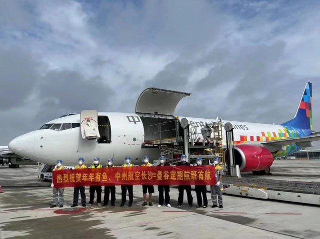 長(zhǎng)沙至曼谷航線由年年有魚(yú)集團(tuán)公司聯(lián)合中州航空有限責(zé)任公司開(kāi)通。該航線主要出口國(guó)產(chǎn)普貨和電商產(chǎn)品,進(jìn)口泰國(guó)水果,計(jì)劃每周執(zhí)飛4趟次航班,月度貨郵吞吐量可達(dá)640噸。