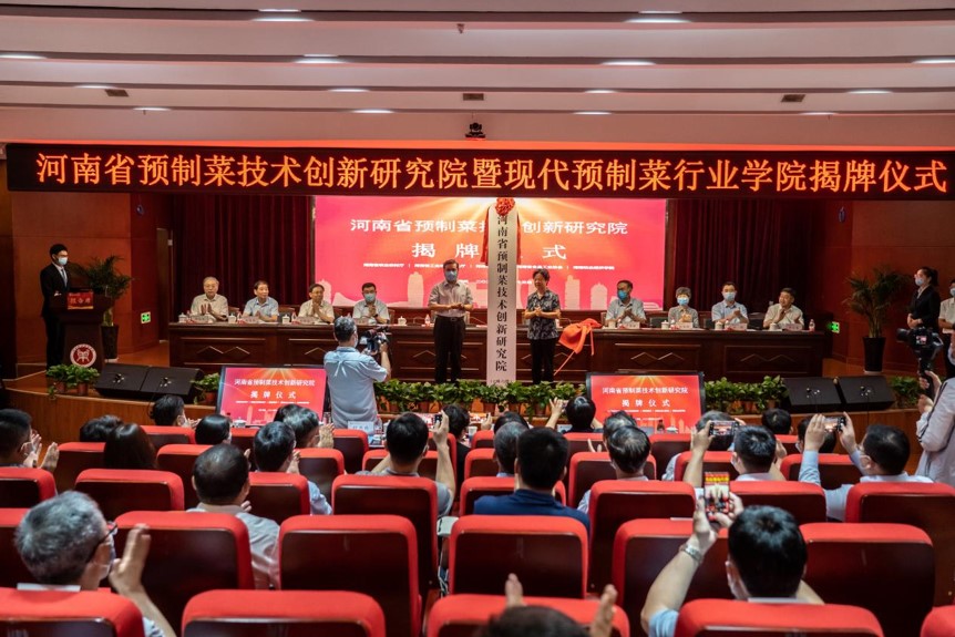 6月23日下午,河南省預(yù)制菜技術(shù)創(chuàng)新研究院暨現(xiàn)代預(yù)制菜行業(yè)學(xué)院揭牌儀式在河南牧業(yè)經(jīng)濟(jì)學(xué)院龍子湖校區(qū)行政樓一樓學(xué)術(shù)報告廳舉行。河南省副省長武國定,中國工程院院士、國家海洋食品工程技術(shù)研究中心主任朱蓓薇教授及相關(guān)專家、廳局領(lǐng)導(dǎo)、河南牧業(yè)經(jīng)濟(jì)學(xué)院領(lǐng)導(dǎo)出席揭牌儀式。