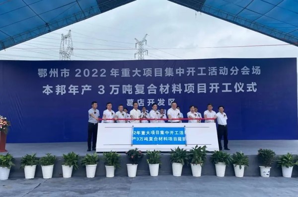 在葛店開發(fā)區(qū)分會場,副市長、葛店開發(fā)區(qū)黨工委書記彭波宣布本邦年產3萬噸復合材料項目開工。該項目總投資5億元,項目建成達產后,預計可實現年產值10億元。
