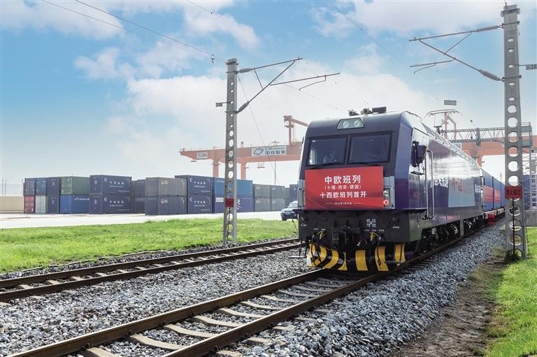 7月20日,首列中歐班列長(zhǎng)安號(hào)“十西歐”班列滿載汽車配件等貨物從西安國(guó)際港站發(fā)車。該班列從湖北省十堰市出發(fā),經(jīng)西安港集結(jié),由阿拉山口出境,預(yù)計(jì)15天后可抵達(dá)德國(guó)杜伊斯堡。班列的開通標(biāo)志著“卡車之都”十堰正式加入西安港“朋友圈”,長(zhǎng)安號(hào)“+西歐”線路擴(kuò)展至17條。