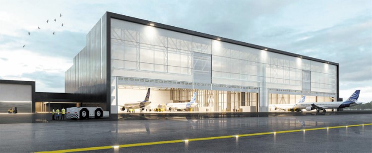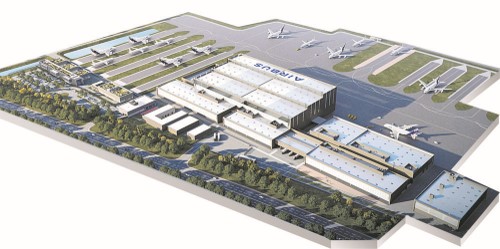 簡(jiǎn)潔明快的建筑色調(diào),高低錯(cuò)落的建筑高度,整齊排列的飛機(jī)機(jī)隊(duì),屋頂大大的LOGO“AIRBUS”……從設(shè)計(jì)效果圖來(lái)看,項(xiàng)目未來(lái)的模樣躍然于紙上。