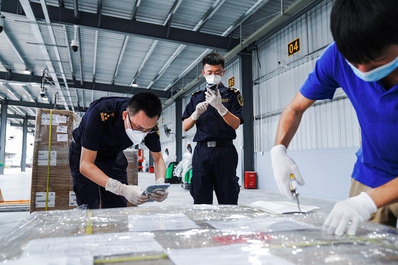 深圳寶安機(jī)場海關(guān)重點(diǎn)關(guān)注中小微企業(yè)的前置理貨需求,快速響應(yīng)解決企業(yè)的疑難問題,提升企業(yè)的通關(guān)體驗(yàn)。改革落地后,海關(guān)查驗(yàn)整體耗時(shí)縮短,貨物周轉(zhuǎn)效能提升,出口貨物庫內(nèi)停留時(shí)間縮短,釋放場站空間1600平方米,貨站保障能力從550噸/天提升至800噸/天。