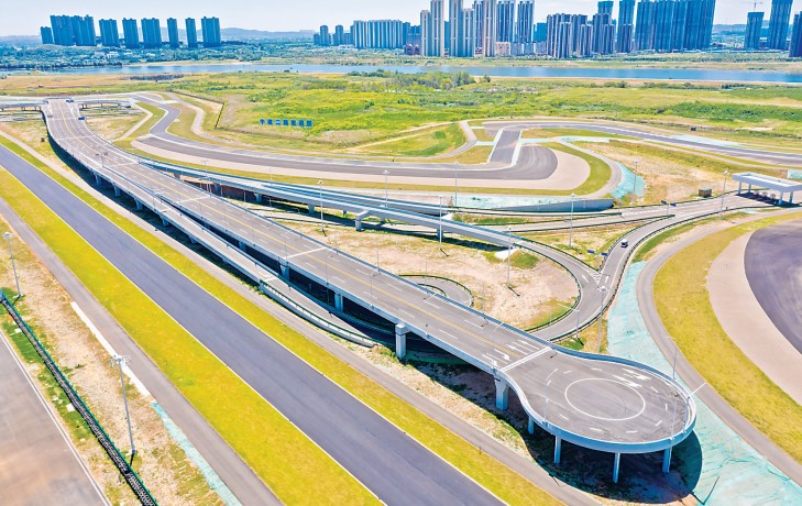 該項目由中建二局投資、建造、運營,占地面積1312畝,擁有十大場景測試區(qū)、四大實驗室群以及國際F2賽車場,因此,該項目也是世界唯一一個F2級賽道和T5級測試場結(jié)合的封閉測試場項目。