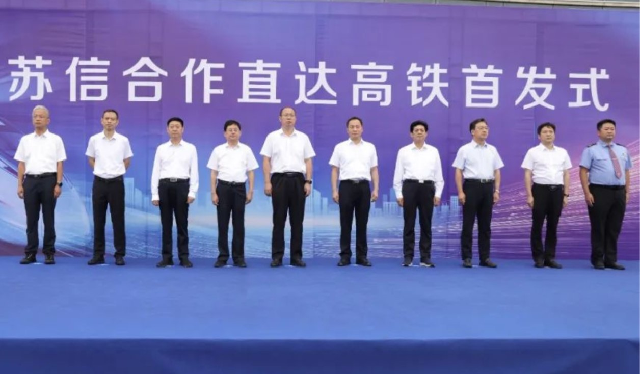 秦保建在致辭中說,2022年5月19日,經(jīng)國務院同意,國家發(fā)改委在革命老區(qū)重點城市對口合作工作中,確定了蘇州市與信陽市的對口合作關系,從國家層面搭建了兩地交流合作的高層級通道。蘇信直達高鐵的開通,將極大縮短信陽與蘇州、與長三角的時空距離,進一步凸顯信陽連南貫北、承東啟西的區(qū)位優(yōu)勢,對于我們系統(tǒng)推進“1335”工作布局,加快兩地交通聯(lián)通、產(chǎn)業(yè)貫通、創(chuàng)新融通、要素協(xié)同,具有重要的戰(zhàn)略性意義。這趟班列,不僅是穿梭于蘇信兩地的流動名片和移動文化長廊,更是展現(xiàn)信陽革命紅城、生態(tài)綠城、開放新城的流動載體。蘇信直達高鐵的開通,也是信陽與蘇州合作的第一條高速通道,我們將對標蘇州、學習蘇州、借勢蘇州,致力打造經(jīng)濟發(fā)展的創(chuàng)新之路、城鄉(xiāng)發(fā)展的協(xié)調(diào)之路、產(chǎn)業(yè)發(fā)展的綠色之路、互利共贏的開放之路、幸福生活的共享之路,讓老區(qū)信陽乘著高鐵駛向美好未來。