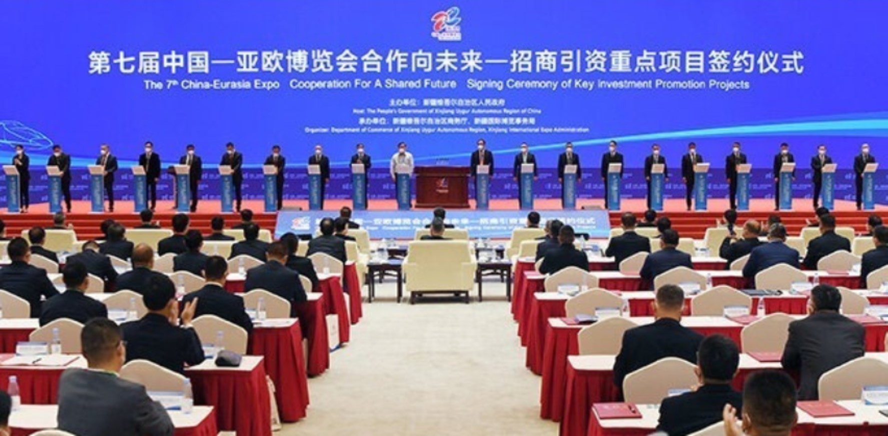 9月20日下午,第七屆中國—亞歐博覽會舉行合作向未來—招商引資重點項目簽約儀式。本屆博覽會預(yù)計簽約招商引資項目300多個、總額近1萬億元,涉及新疆油氣、煤炭、礦產(chǎn)、綠色化工、新能源新材料、水利水電、數(shù)字信息、現(xiàn)代農(nóng)業(yè)、物流運輸?shù)榷鄠€領(lǐng)域。