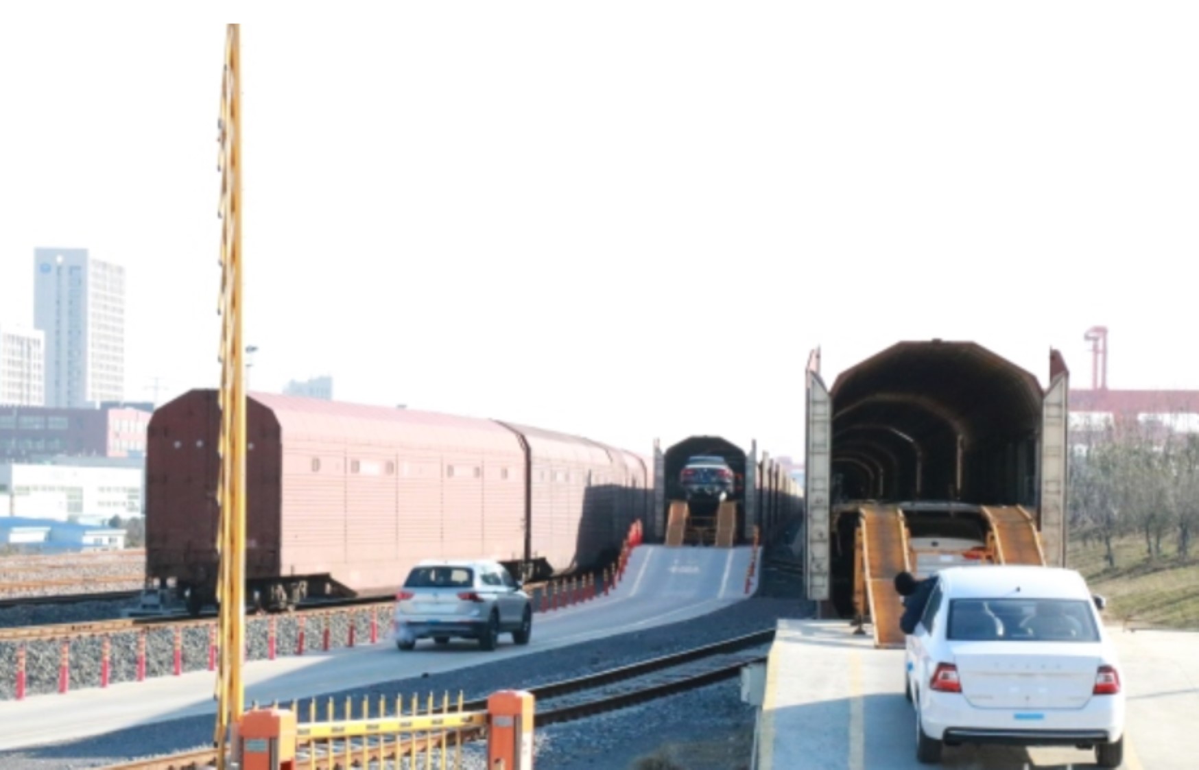 與以往不同的是,此趟班列采用商品車鐵路運(yùn)輸專用車進(jìn)行出口運(yùn)輸,裝載能力更大,適裝車型更廣,運(yùn)輸穩(wěn)定性和安全性也更有保障?!耙劳形沂≈袣W班列通道優(yōu)勢(shì),此趟商品車鐵路運(yùn)輸專用車中歐班列,相較海運(yùn)時(shí)效提升一倍,相對(duì)班列普通集裝箱運(yùn)能增加超74%,切實(shí)提高商品車運(yùn)輸效率,降低車企綜合運(yùn)輸成本,提升中歐班列(江蘇號(hào))運(yùn)行質(zhì)效。”江蘇班列供應(yīng)鏈公司總經(jīng)理魏賢弟說。