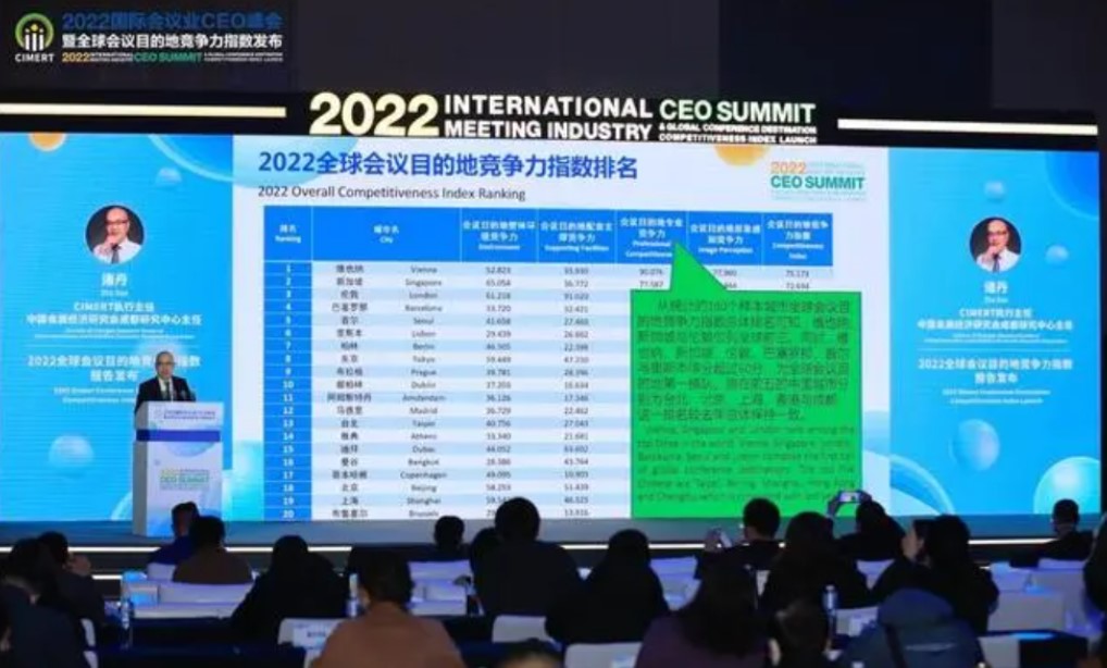 12月8日,2022國(guó)際會(huì)議業(yè)CEO峰會(huì)暨全球會(huì)議目的地競(jìng)爭(zhēng)力指數(shù)發(fā)布會(huì)在蓉舉辦。根據(jù)榜單,成都位列中國(guó)城市前五。會(huì)上,成都還發(fā)布了《2023年成都會(huì)展產(chǎn)業(yè)鏈合作機(jī)會(huì)清單》,釋放出城市會(huì)展產(chǎn)業(yè)合作新機(jī)遇。
