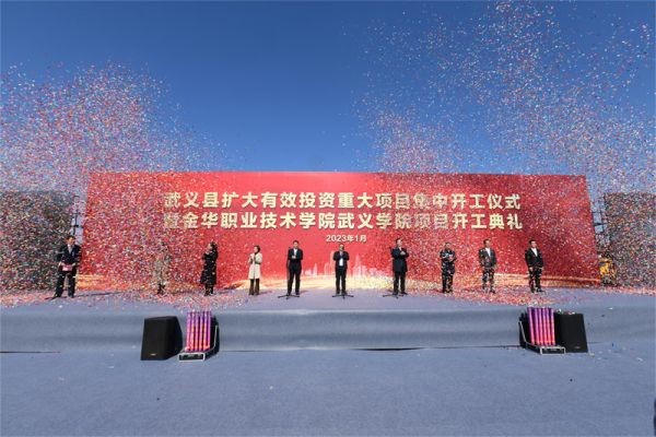 1月31日上午,金華武義縣擴(kuò)大有效投資集中開工儀式在金華職業(yè)技術(shù)學(xué)院武義學(xué)院項目現(xiàn)場舉行,總投資204億元的35個重大項目集中開工。