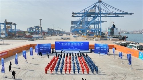 2月2日上午,山東省港口集團(tuán)港產(chǎn)城融合發(fā)展(青島)建成項(xiàng)目投產(chǎn)暨新項(xiàng)目開(kāi)工儀式在山東港口青島港前灣港區(qū)自動(dòng)化碼頭三期工程施工現(xiàn)場(chǎng)舉行。