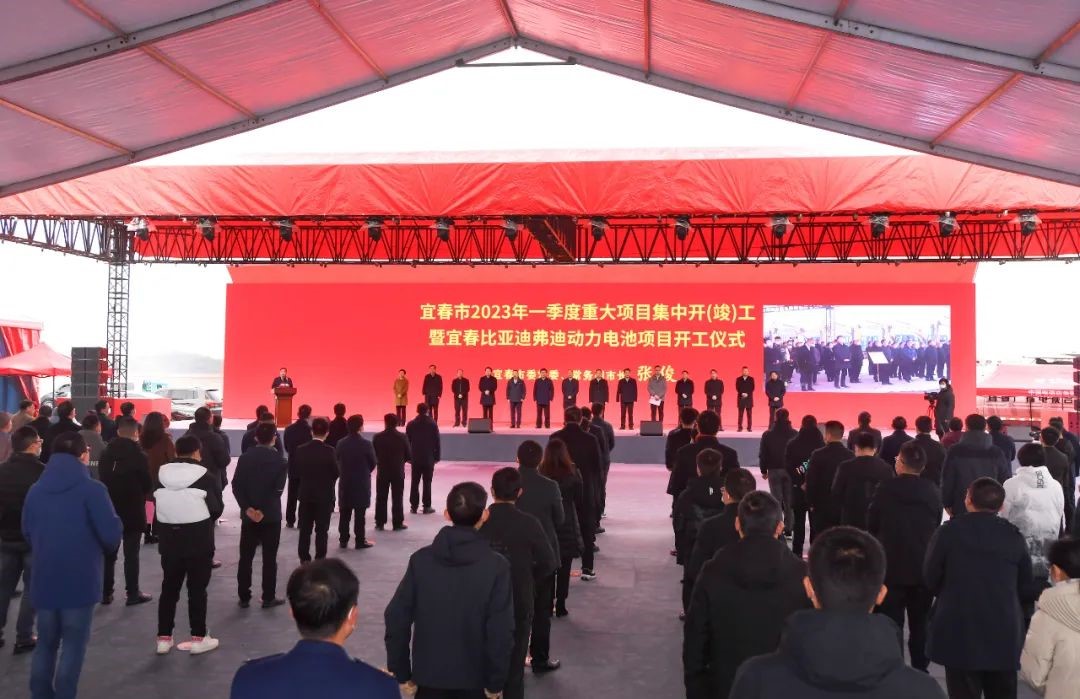 2月6日上午,在省市縣三級重大項目協(xié)同聯(lián)動開工暨2023年“項目大會戰(zhàn)”動員大會結(jié)束之后,宜春市緊接著舉行2023年一季度重大項目集中開(竣)工暨宜春比亞迪弗迪動力電池項目開工儀式。