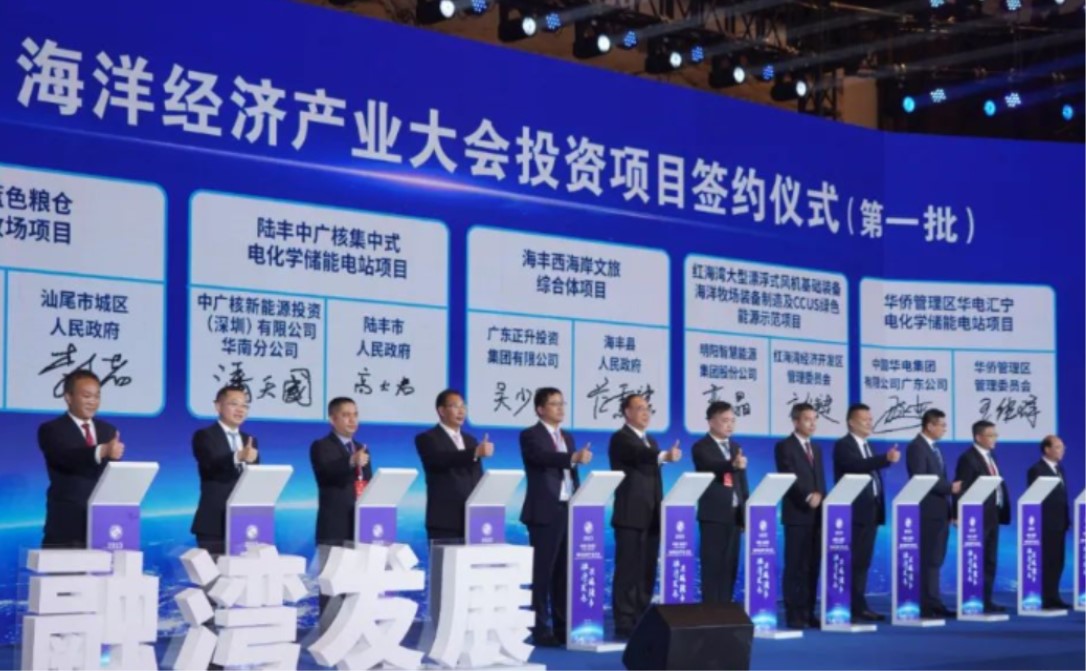 第一批簽約項(xiàng)目有:中國(guó)華電集團(tuán)有限公司廣東公司投資50億元的華僑管理區(qū)華電匯寧電化學(xué)儲(chǔ)能電站項(xiàng)目,明陽(yáng)智慧能源集團(tuán)股份公司投資67億元的紅海灣大型漂浮式風(fēng)機(jī)基礎(chǔ)裝備、海洋牧場(chǎng)裝備制造及CCUS綠色能源示范項(xiàng)目等。