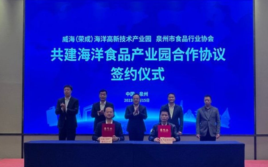 會上,進行了食品產(chǎn)業(yè)推介,家家悅集團與盼盼食品集團簽署戰(zhàn)略合作協(xié)議,威海海洋高新技術(shù)產(chǎn)業(yè)園與泉州市食品產(chǎn)業(yè)協(xié)會簽署共建海洋食品產(chǎn)業(yè)園合作協(xié)議。