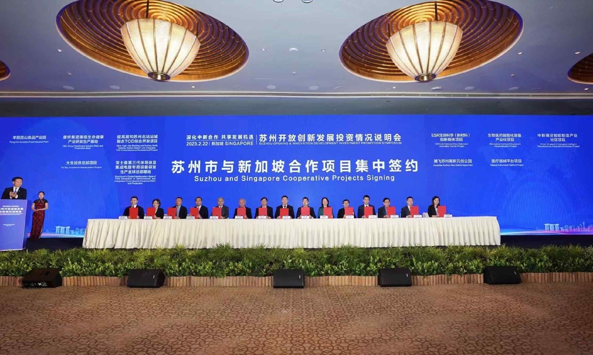 2月19日至23日,蘇州市代表團出訪新加坡,其間雙方成功簽訂40個合作項目,除了蘇州工業(yè)園區(qū)與新加坡簽訂眾多項目外,昆山市、太倉市、吳中區(qū)、相城區(qū)、虎丘區(qū)(蘇州高新區(qū))也與新加坡企業(yè)累計簽訂10個合作項目。這標(biāo)志著,蘇州與新加坡的合作從蘇州工業(yè)園區(qū)的“一枝獨秀”擴展到“滿園春色”,加速朝全市域、全領(lǐng)域、全方位方向深化合作。