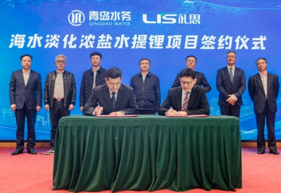 3月8日,青島水務(wù)集團海水淡化公司與禮思(上海)科技公司在青島百發(fā)海水淡化廠舉行全球首個海水淡化濃鹽水提鋰合作項目簽約儀式。