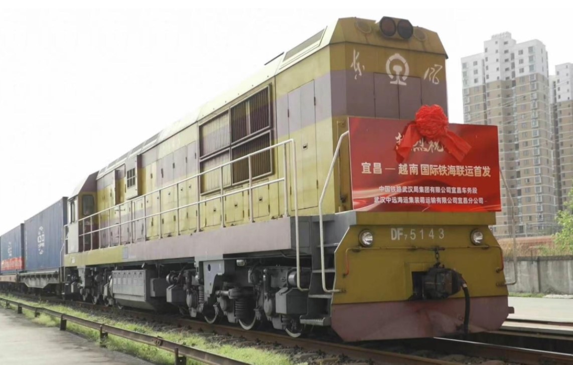 4月13日,湖北省首次開通至越南鐵海聯(lián)運(yùn)班列:上午10時,一列搭載23個40英尺集裝箱的貨運(yùn)班列從宜昌東站開出,經(jīng)焦柳線駛往廣西欽州港后,集裝箱貨物將轉(zhuǎn)乘海輪前往越南。