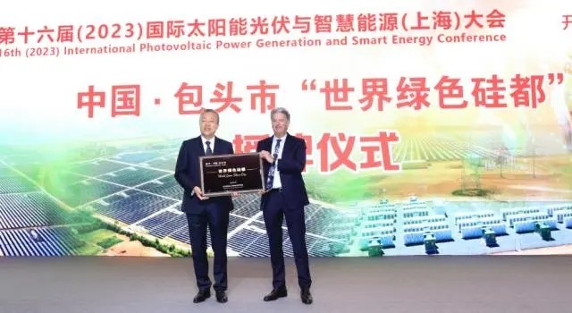 在5月23日舉行的第十六屆國際太陽能光伏與智慧能源大會開幕式上,包頭市被全球綠色能源理事會頒授“世界綠色硅都”稱號。