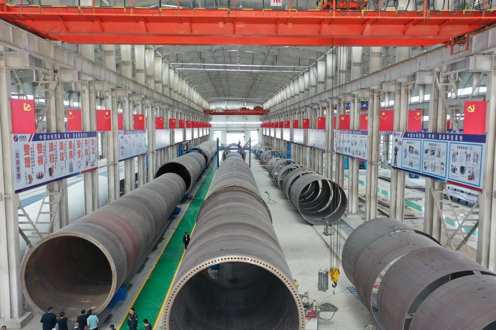 近日,由中國水利水電第四工程局有限公司塔城分公司生產(chǎn)的高107米、最大直徑5.28米、單段最大重量74噸、單套重量達(dá)325.8噸的6.25兆瓦風(fēng)力發(fā)電機(jī)組塔架正式下線。
