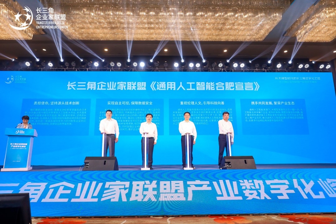 6月3日,在合肥舉行的長三角企業(yè)家聯(lián)盟產(chǎn)業(yè)數(shù)字化峰會(huì)上,長三角企業(yè)家聯(lián)盟發(fā)布《通用人工智能合肥宣言》。