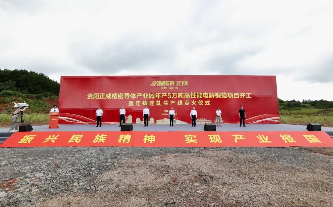 7月19日,正威精密導(dǎo)體產(chǎn)業(yè)城年產(chǎn)5萬噸高性能電解銅箔項目開工暨連鑄連軋生產(chǎn)線點火儀式在貴陽經(jīng)開區(qū)舉行。