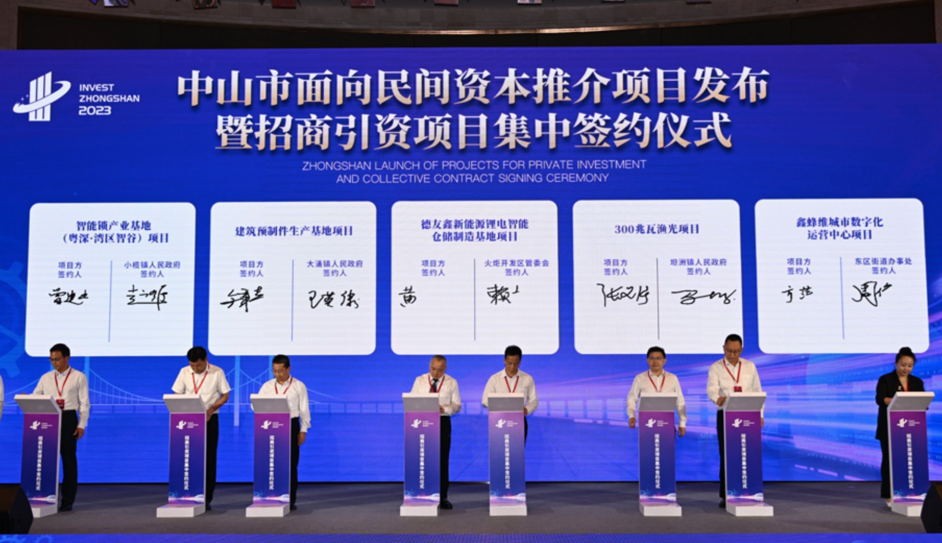 近日,中山市面向民間資本推介項(xiàng)目發(fā)布暨招商引資項(xiàng)目集中簽約儀式舉行,總投資超1100億元的推介項(xiàng)目面向社會(huì)“掛榜招商”,激發(fā)民間投資活力。