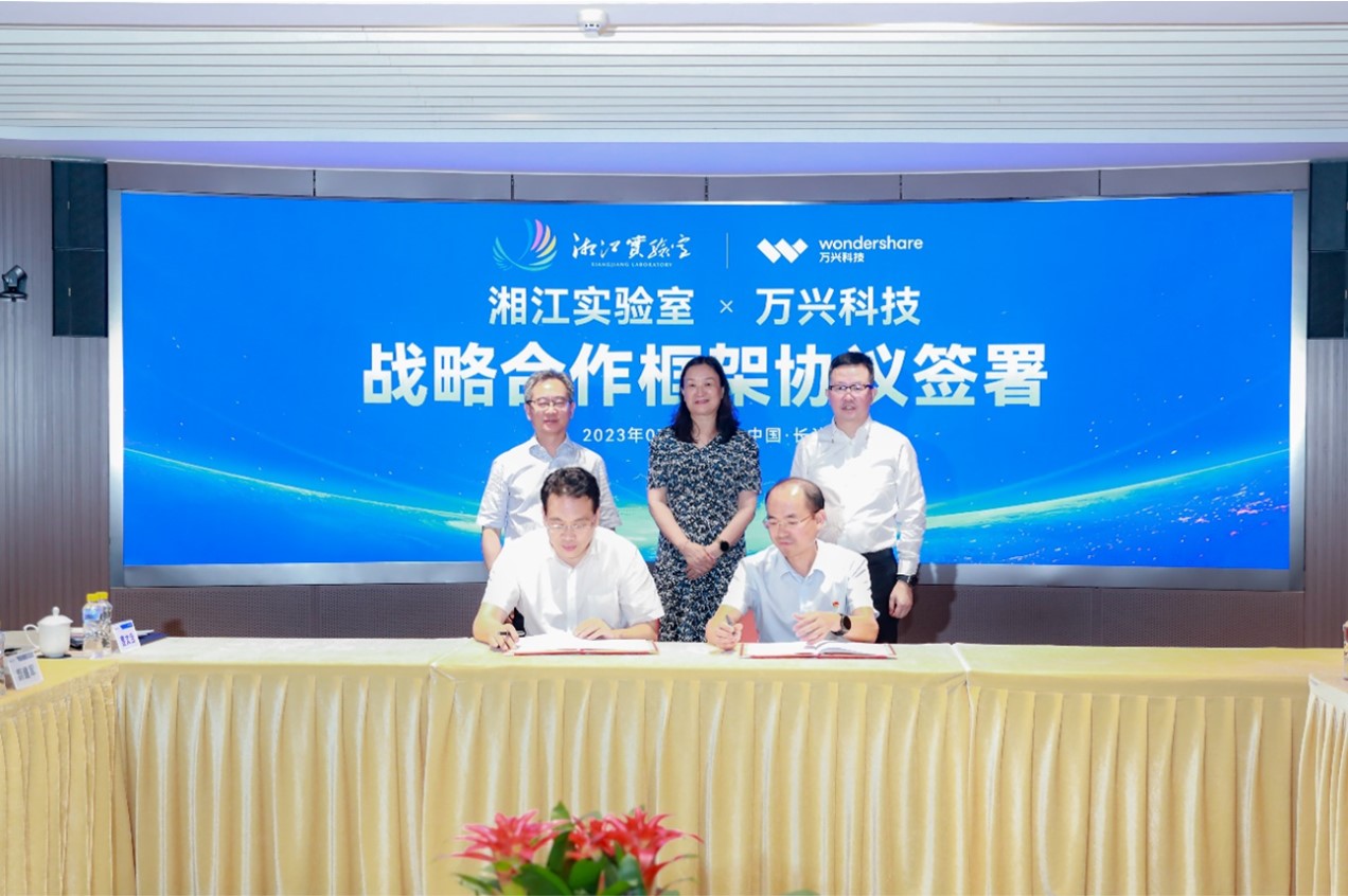 近日,新區(qū)企業(yè)萬興科技與湘江實(shí)驗(yàn)室戰(zhàn)略合作簽約暨共建研究院揭牌儀式在長沙萬興創(chuàng)意科技大廈舉行。