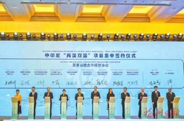 “本次簽約涉及食品產(chǎn)業(yè)、基礎(chǔ)配套、公共服務(wù)、金融服務(wù)等領(lǐng)域,將為中印尼‘兩國(guó)雙園’發(fā)展增添新活力、注入新動(dòng)力?!备V菪聟^(qū)元洪功能區(qū)管委會(huì)招商處負(fù)責(zé)人余林林說。