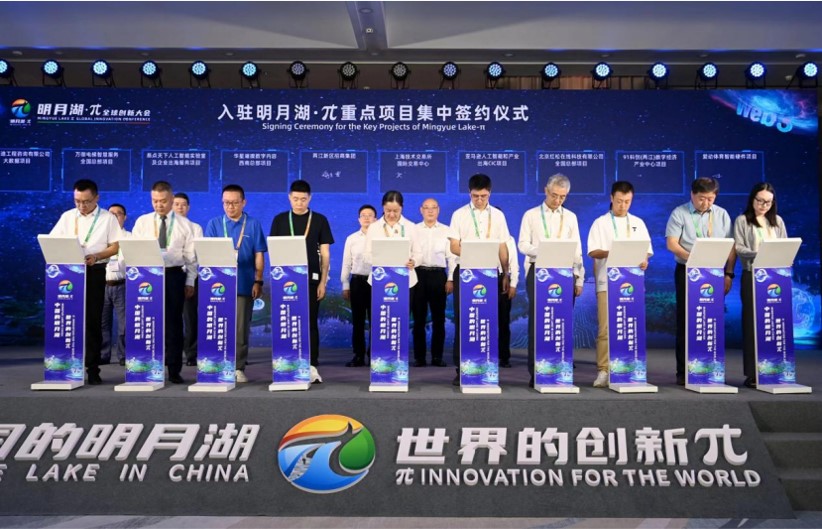 會上,由重慶移動、重慶電信、重慶聯(lián)通、京東、華為、浪潮、商湯、中科云從等11家共同倡議發(fā)起了“明月湖·π算力矩陣行動”,成為西部首個提出“算力共享”概念的城市。同時啟動了七大使能平臺建設(shè)、“明月湖·π”國際創(chuàng)新創(chuàng)業(yè)大賽暨首屆 Web3.0 創(chuàng)賽全球征集令、明月湖畔創(chuàng)業(yè)投資基金,并舉行了入駐重點項目集中簽約儀式,對跨境創(chuàng)新中心、西南技術(shù)交易服務(wù)中心、重慶兩江新區(qū)海外創(chuàng)新孵化中心進行了揭牌。