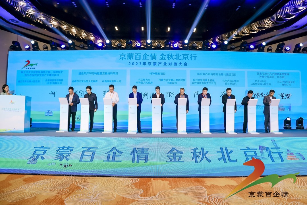 10月13日,“京蒙百企情 金秋北京行”2023年京蒙產(chǎn)業(yè)對接大會在京舉行,簽約額達908億元?,F(xiàn)場,10家為助力內(nèi)蒙古鄉(xiāng)村振興事業(yè)作出突出貢獻的北京企業(yè)代表登上主席臺,受到京蒙兩地政府部門的表彰。