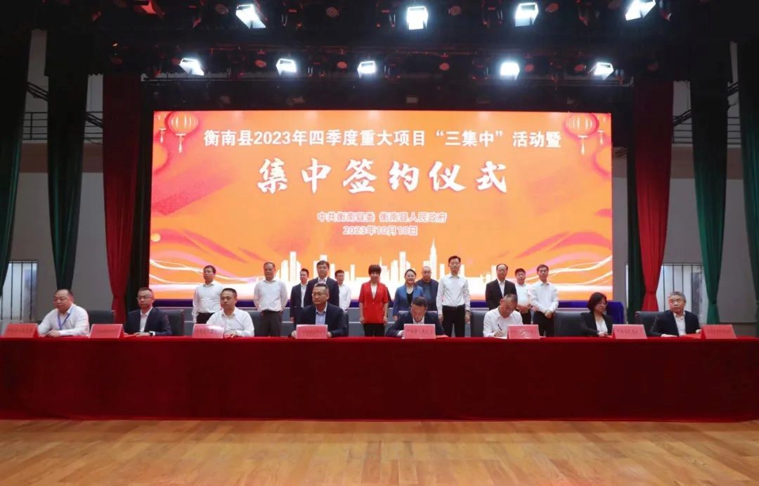 10月18日,衡南縣舉行2023年四季度重大項目"三集中"活動,23個重大項目集中簽約、開(竣)工,總投資108.9億元。