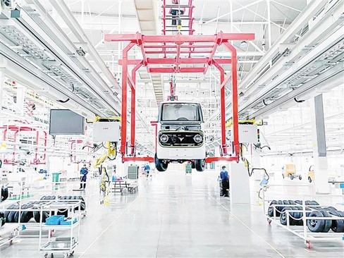 項目建設風起云涌。作為國內首批獲取“雙資質”和氫能資質的新能源商用車企業(yè),國家高新技術企業(yè)河南德力新能源汽車有限公司(以下簡稱德力新能源)在新能源汽車領域無疑是一顆璀璨的明星。在德力新能源生產(chǎn)車間,經(jīng)過沖壓、焊裝、涂裝、總裝四大工藝生產(chǎn)線,一輛輛線條流暢、造型精美的新能源微卡車—大力牛魔王D05“走”下生產(chǎn)流水線。大力牛魔王D05是一款專為城市配送而造的車型,可以按需選擇廂體尺寸、貨臺高度、充電方式和續(xù)航里程,具備‘空間牛’‘省錢?!悄芘?的三大核心優(yōu)勢?!?德力新能源首席技術官王可峰說。