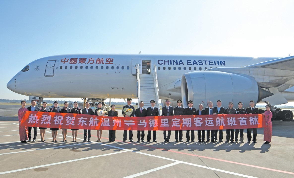 11月22日中午11點(diǎn)多,搭載195名乘客的MU261航班從溫州龍灣國際機(jī)場起飛,前往西班牙馬德里。這標(biāo)志著溫州至馬德里國際定期客運(yùn)航線正式開通,成為繼溫州至羅馬、溫州至米蘭后,溫州機(jī)場開通的第三條洲際客運(yùn)航線,意味著溫州機(jī)場“啞鈴形”國際航網(wǎng)更趨完善,將更好地服務(wù)保障“一號開放工程”。