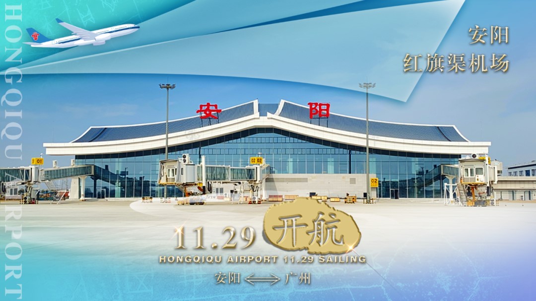 安陽紅旗渠機場于11月29日正式通航。首航將由南方航空公司執(zhí)飛廣州—安陽航線,今后該航線將于每周一、三、五、日往返廣州。