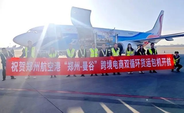 12月8日9:30,一架裝載約20噸跨境電商包裹的中通貨機(jī)從鄭州新鄭國際機(jī)場(chǎng)起飛飛往泰國首都曼谷,標(biāo)志著鄭州航空港經(jīng)濟(jì)綜合實(shí)驗(yàn)區(qū)“鄭州—曼谷”跨境電商雙循環(huán)貨運(yùn)包機(jī)正式開航。