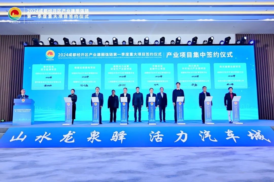 2024年1月29日,2024成都經(jīng)開區(qū)產(chǎn)業(yè)建圈強(qiáng)鏈第一季度重大項(xiàng)目集中簽約儀式舉行。成都經(jīng)開區(qū)一舉簽下11個(gè)項(xiàng)目,總投資額127.61億元,全力跑好開局“第一棒”,奮戰(zhàn)一季度“開門紅”。