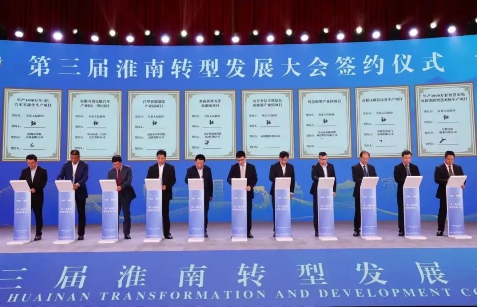 第三屆淮南轉(zhuǎn)型發(fā)展大會集中簽約項目58個,協(xié)議總投資630.06億元。其中,一產(chǎn)項目1個,二產(chǎn)項目55個,三產(chǎn)項目2個。從產(chǎn)業(yè)分類看,新能源汽車及零部件項目18個,先進光伏與新型儲能項目8個,新材料項目7個,高端裝備制造項目12個,綠色食品項目1個,新一代信息技術(shù)項目4個,生命健康項目2個。