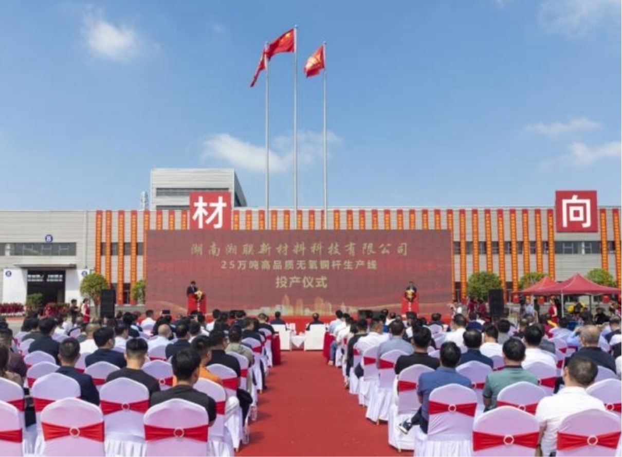 2024年4月23日,汨羅高新區(qū)湖南湘聯(lián)新材料科技有限公司25萬噸無氧銅桿生產(chǎn)線投產(chǎn)儀式舉行。
